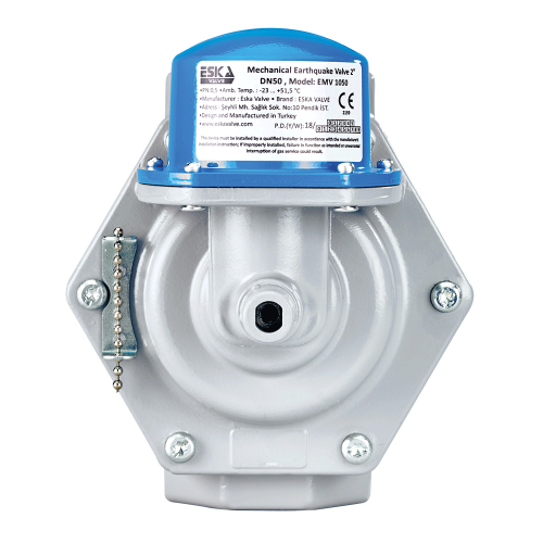 ESKA EMV Serisi Gaz Vanaları; salınım ya da deprem hareketlerini algılayan ve bu hareketler sonucunda, konut vb. yerlerde bulunan gaz girişini otomatik olarak kapatan, özel bir alet ile kurulana kadar kapalı kalmaya devam eden, sismik hareketi algılama araçlarına ve tahrik mekanizmasına sahip, normalde açık elle kurmalı emniyet vanasıdır.